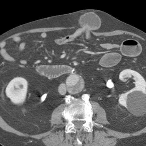 66 year-old male presents with a protruding abdominal mass and pain. [1 of 2]
