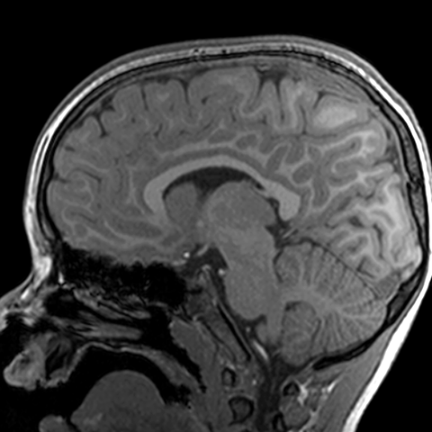 Sagittal image of skull and brain (T1-weighted MRI) [7 of 7]